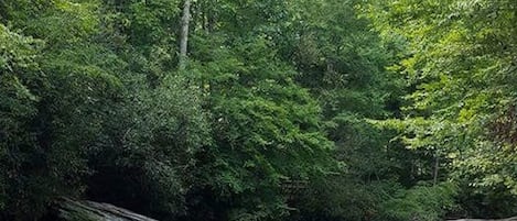 My favorite spot is the big back deck with a relaxing Adirondack chairs, a dining table, a barbecue and outdoor TV. The flat backyard is great for kids to play. You may see a family of deer, a black bear, or even a beaver in the backyard.